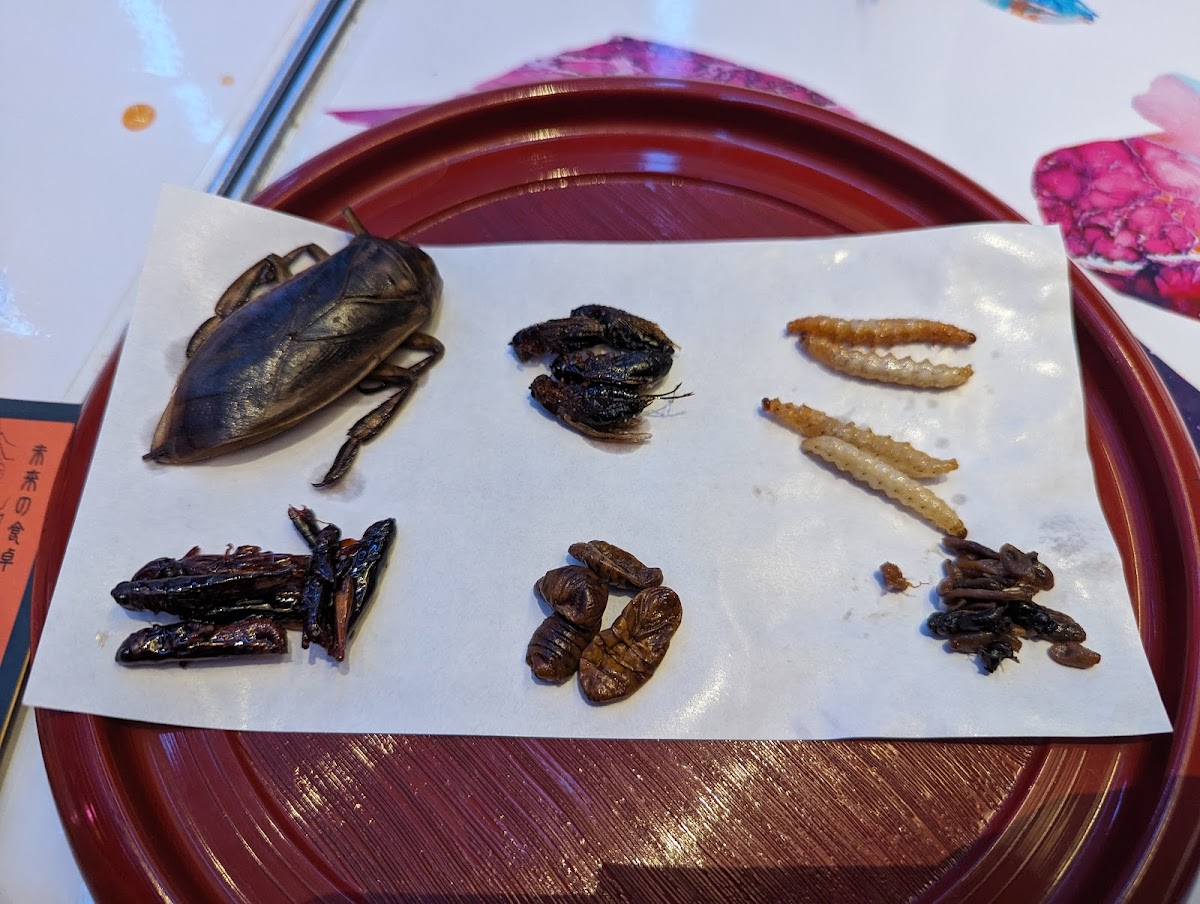 A very very unique dining experience and one that requires a solid stomach. The place offers some very interesting foods, including weird animal parts and insects. For those not willing to take a risk, stick to the grilled meat with more palatable choices. It's a nice, funky atmosphere and a very small seating area. We had a plate of cooked insects, including one that looked like a giant cockroach. The rest were a mix of silkworms, crickets, grasshoppers, etc. The big roach like insects had special instructions on how to eat to avoid any illness or poisoning. We even ordered a platter of barbecue meat, including deer, boar, rabbit, etc. Total cost, including a soft drink each, was around 6750 JPY. It's definitely worth the stomach churning experience!