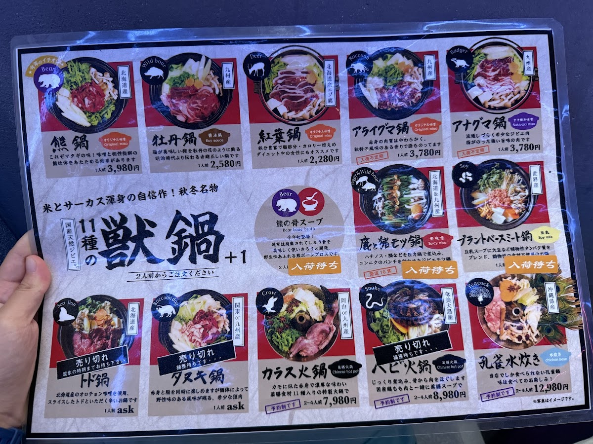 The menu at Rice & Circus Shibuya PARCO offers a distinctive blend of adventurous dishes and familiar flavors, presented in a relaxed izakaya-style setting. Here, you can explore a variety of intriguing meats and unique hot pot options alongside more traditional Japanese fare. The selection invites diners to savor rich, hearty meals—from grilled game meats like deer and kangaroo to unconventional choices such as insect platters and rare delicacies served with care.